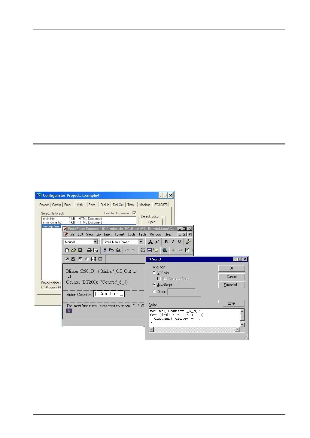 In the Configurator project "Example4" and "Example5" the usage of Java Script is
