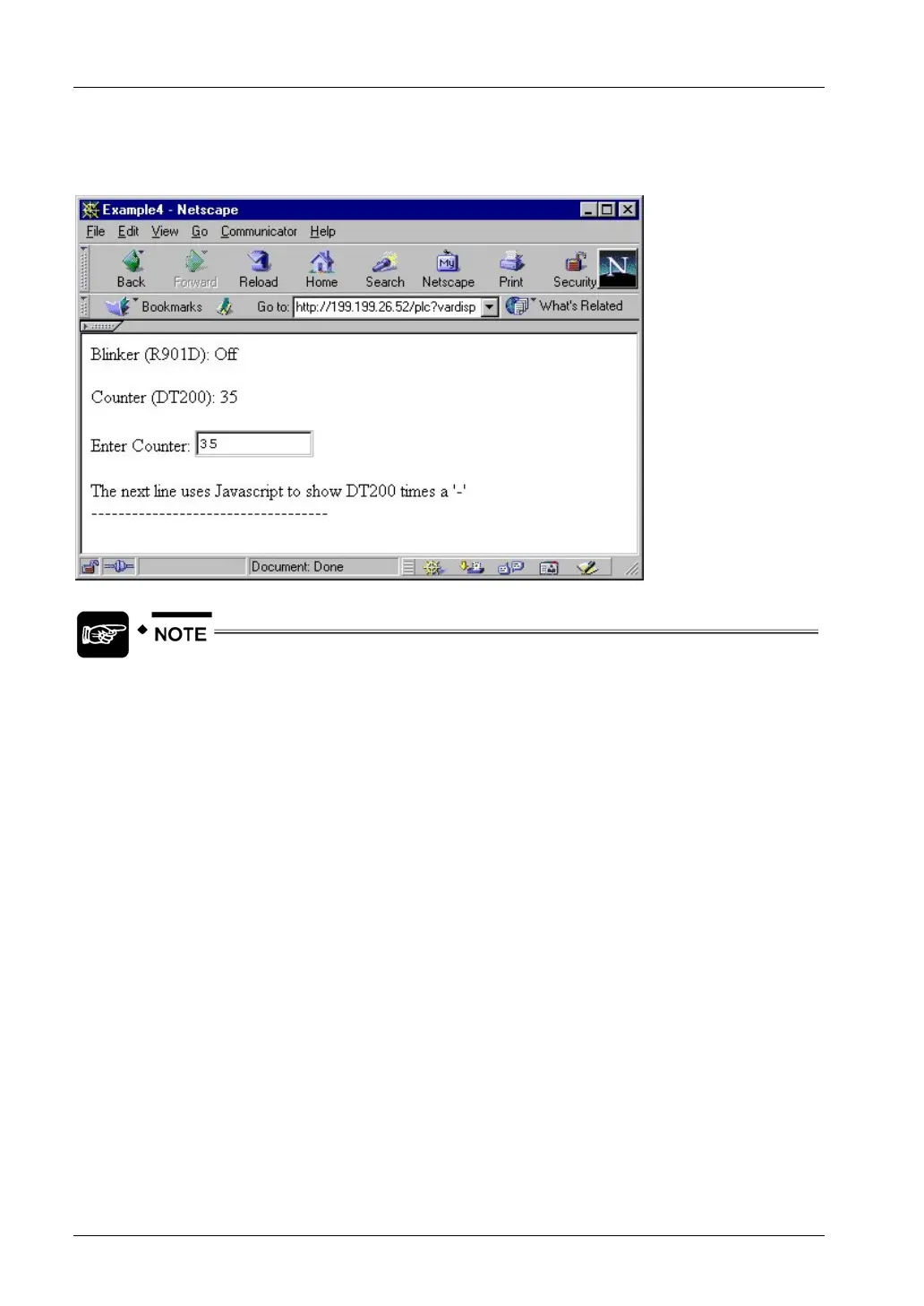In this example DT200 (variable name "Counter") is read from the PLC and interpreted as