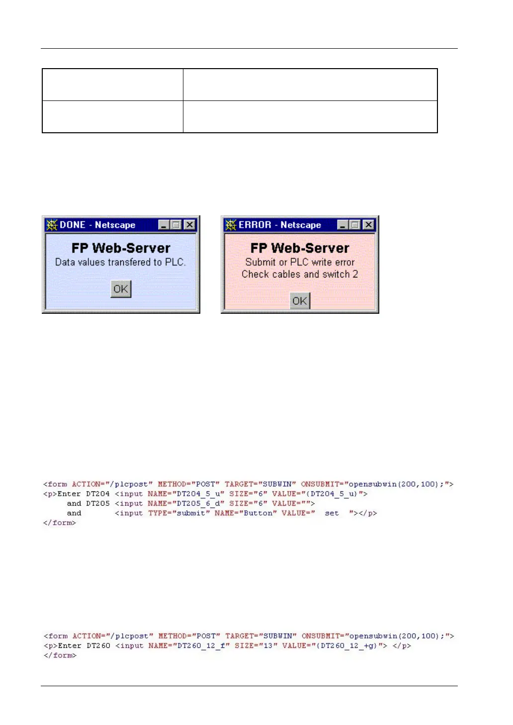 <ENTER>. A confirmation dialog box (OK or ERROR) is generated. In the following HTML