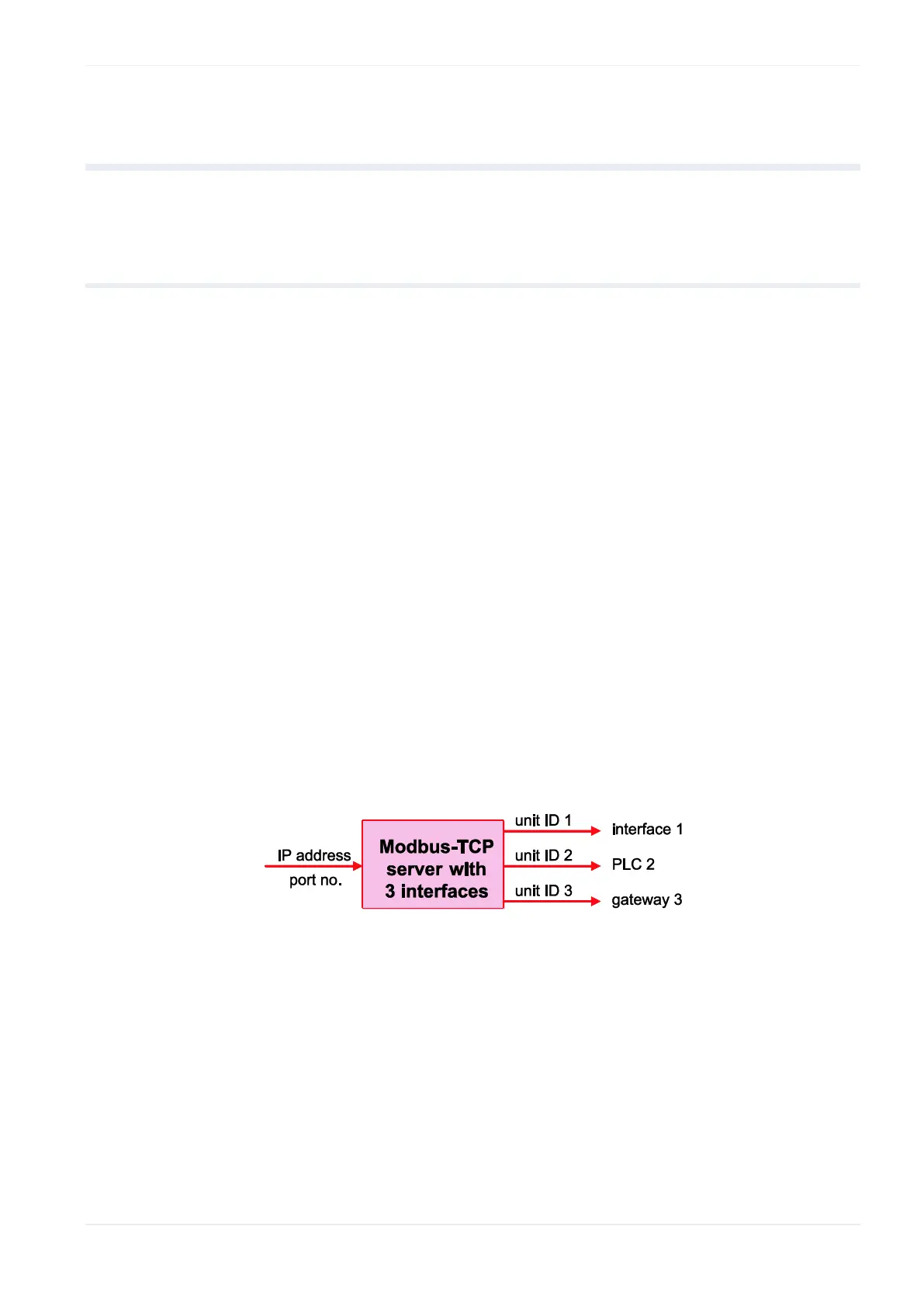 A Modbus-TCP server is addressed with a unique IP address and a port