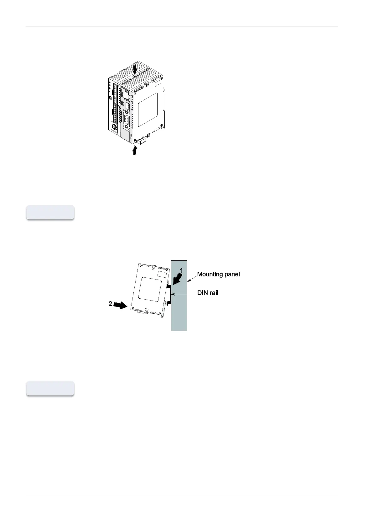 1. Fit the upper hook of the FP Web-Server onto the DIN rail
