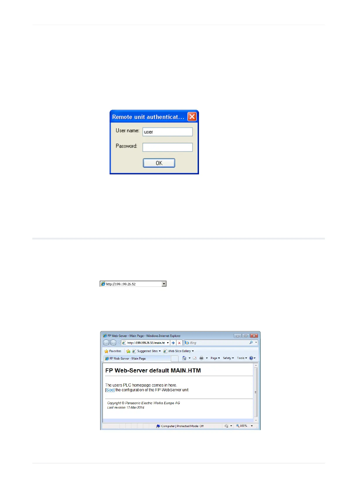 Internet browser. Start the Internet browser and enter the IP address of