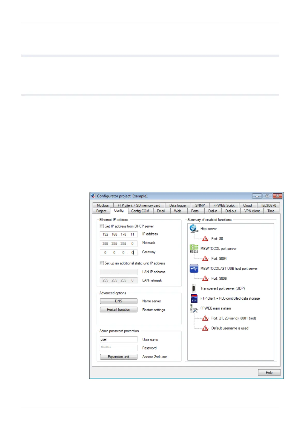 The main settings for the FP Web-Server are adjusted on the "Config" tab.