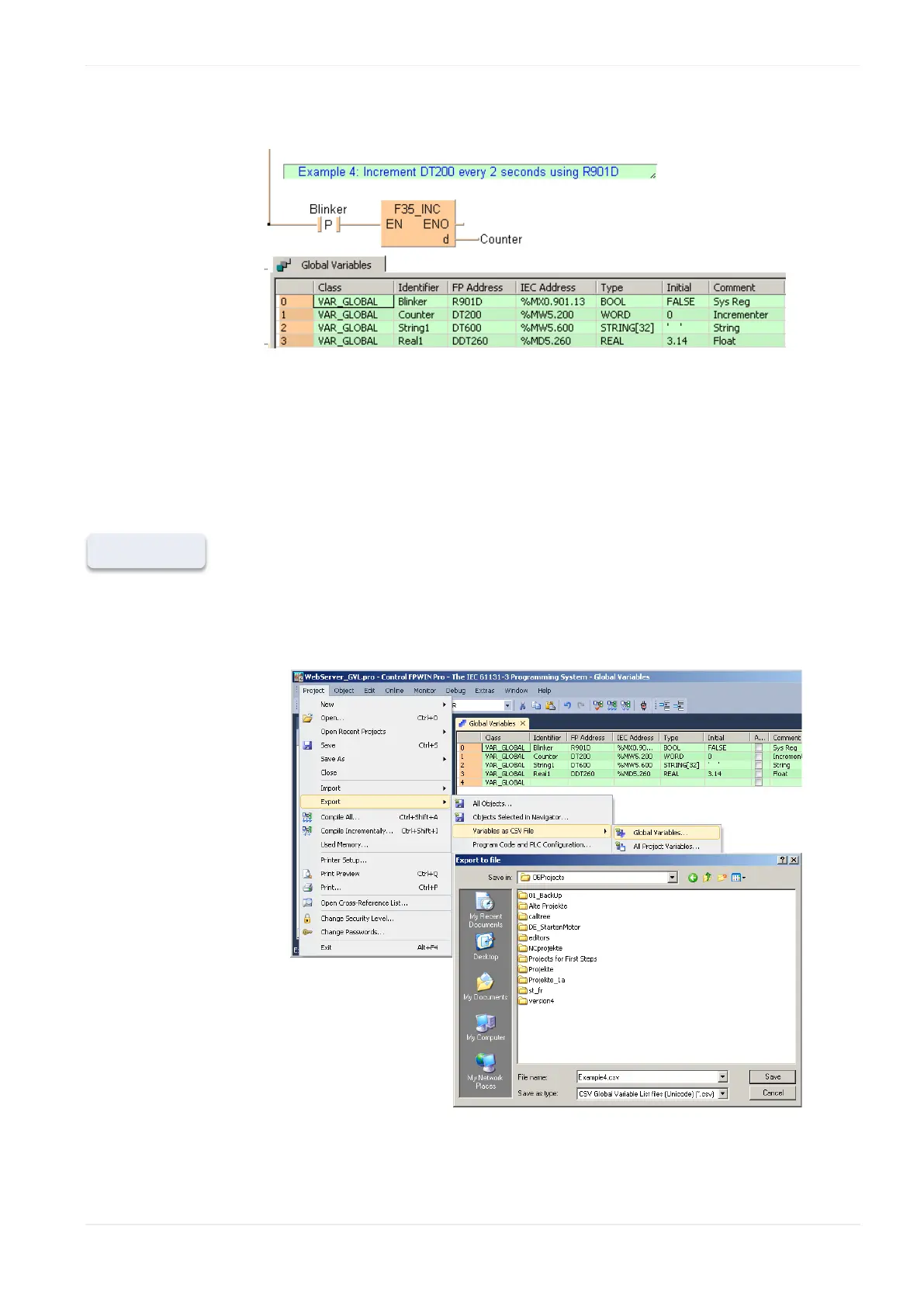Carry out the following steps in FPWIN Pro to export the global variable list