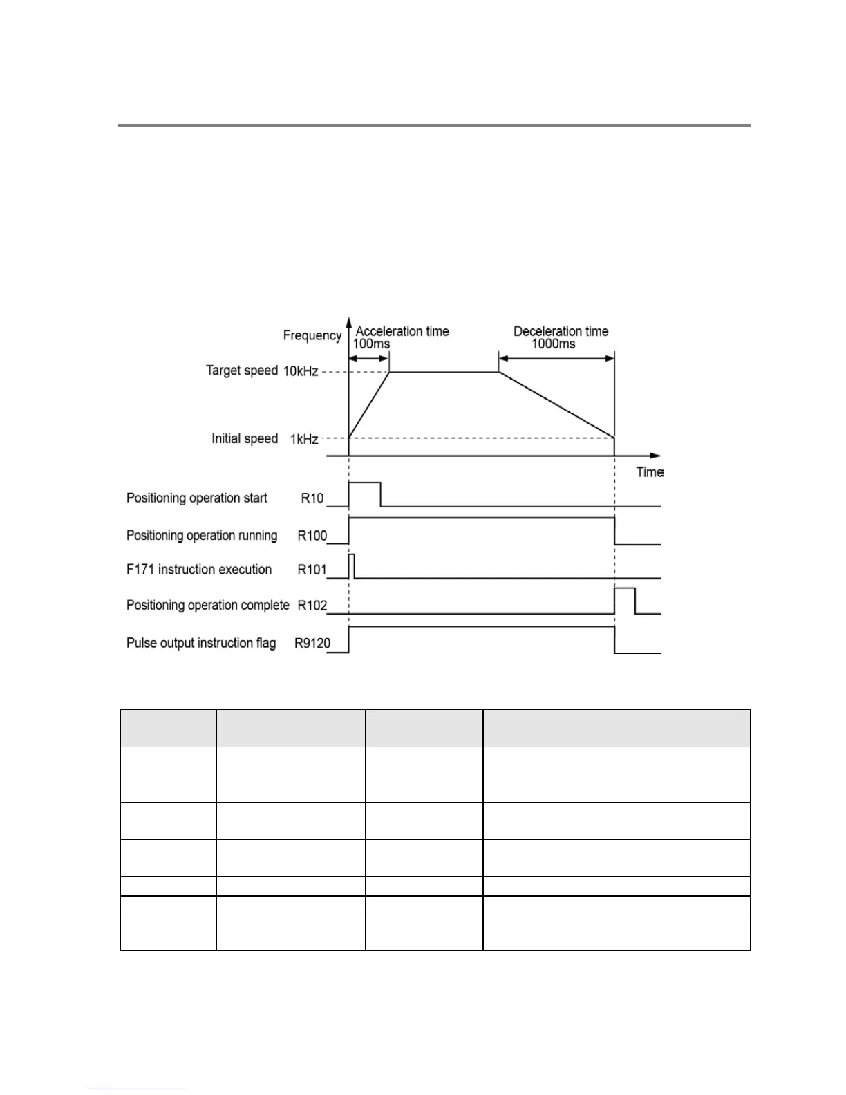 Initial speed: 1 kHz, Target speed: 10 kHz, Acceleraiton time: 100 ms, Deceleration time: 1000 ms,