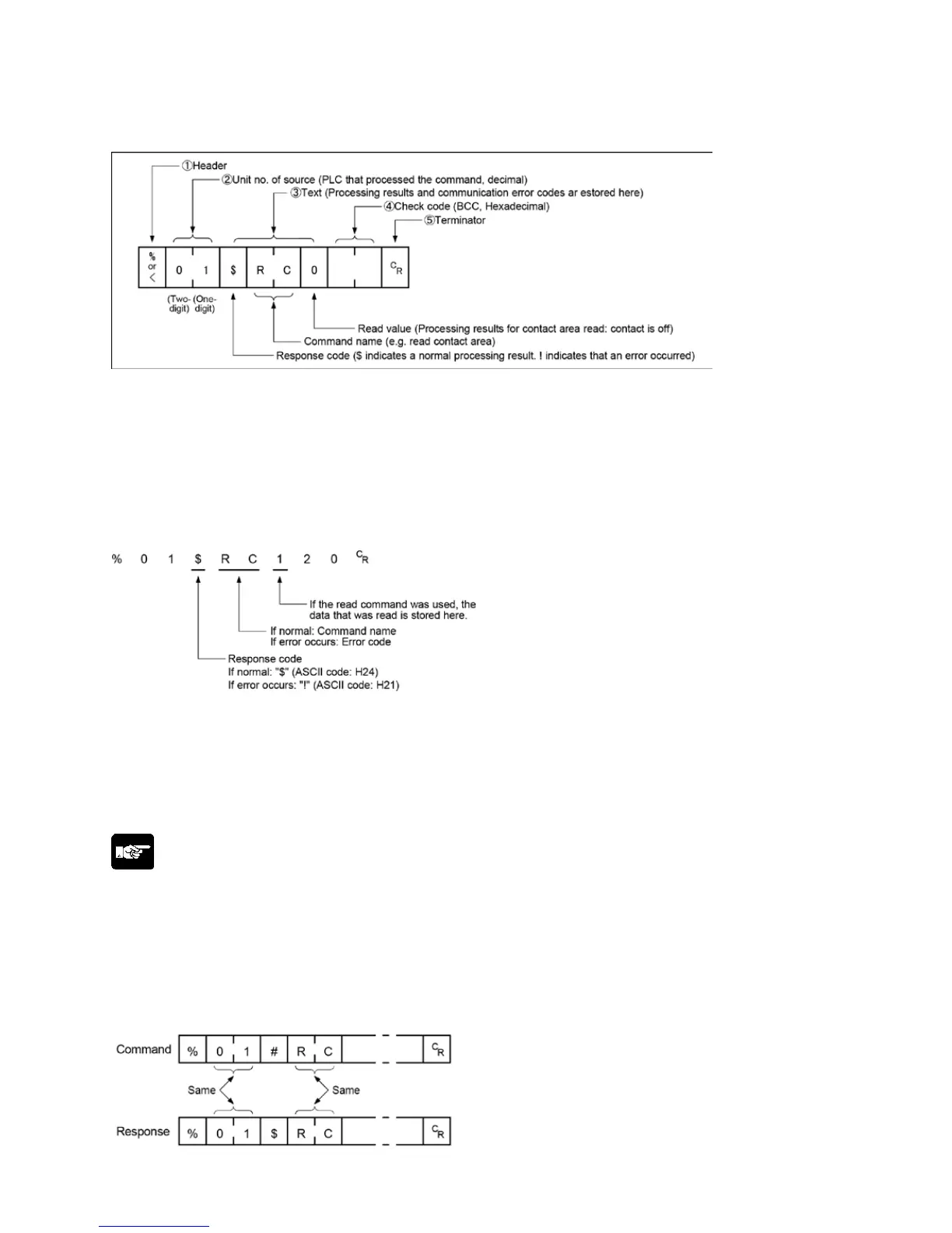 - If the response contains an "!" instead of a "$", the command was not processed successfully. The