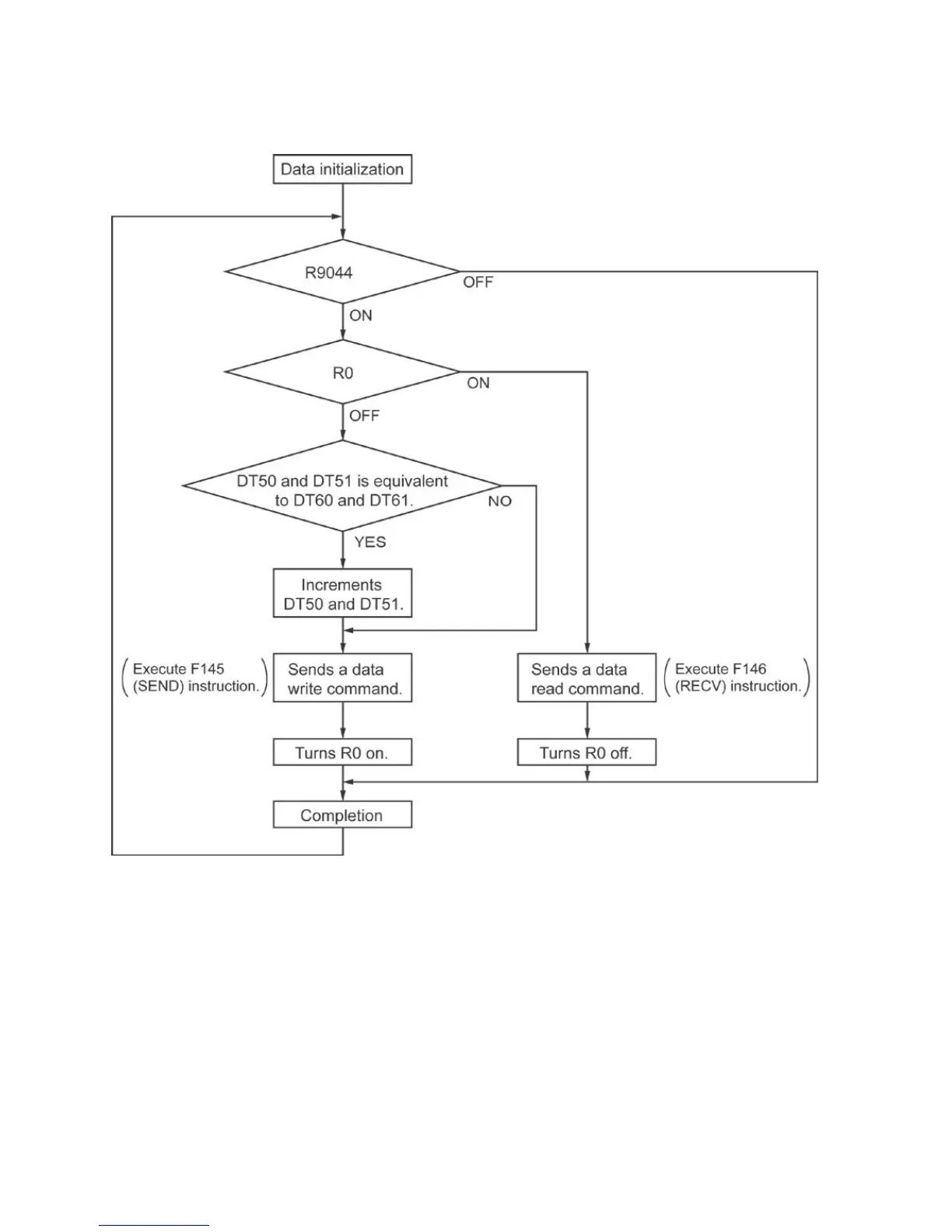 1. Updates the write data if the write data (DT50 and DT51) and the read data (DT60 and DT61) are