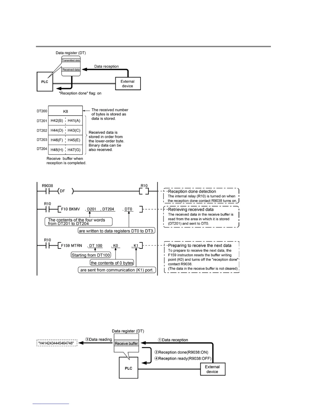 turn off the reception done” contact R9038. The system is now ready to receive the next data.