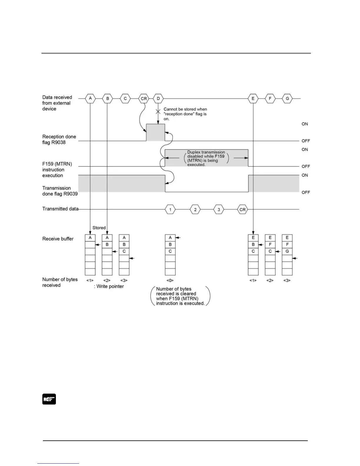 - Duplex transmission is disabled while F159 (MTRN) is being executed. The “transmission done” flag
