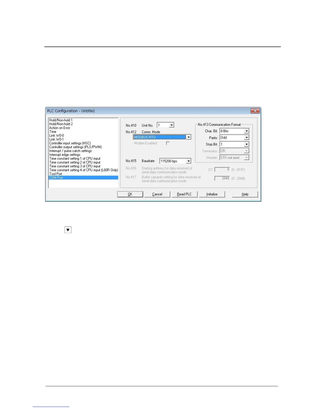device. The settings of the baud rate switches on the side of the unit and the system register No. 415