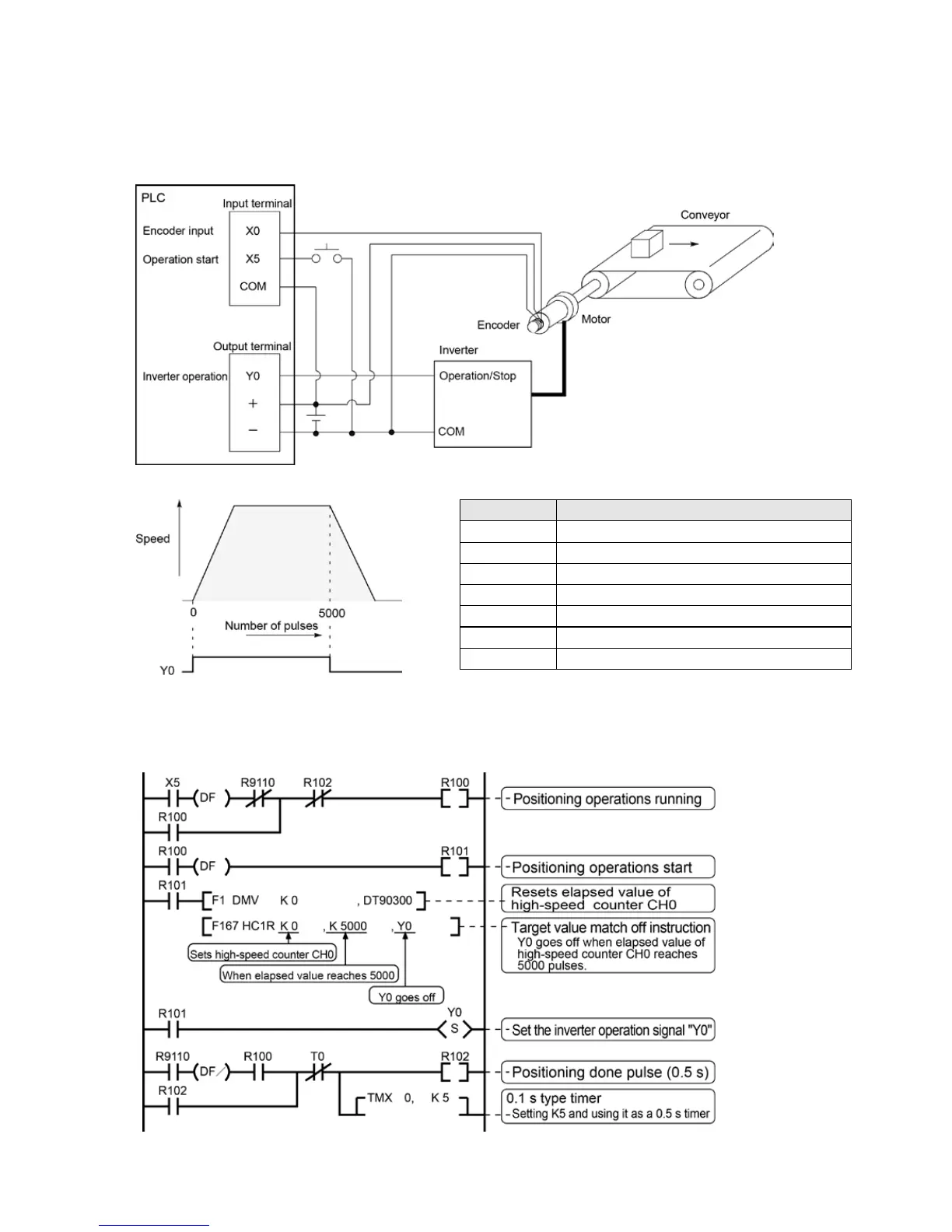 and DT90301) reaches K5000, Y0 turns off and the conveyor stops.