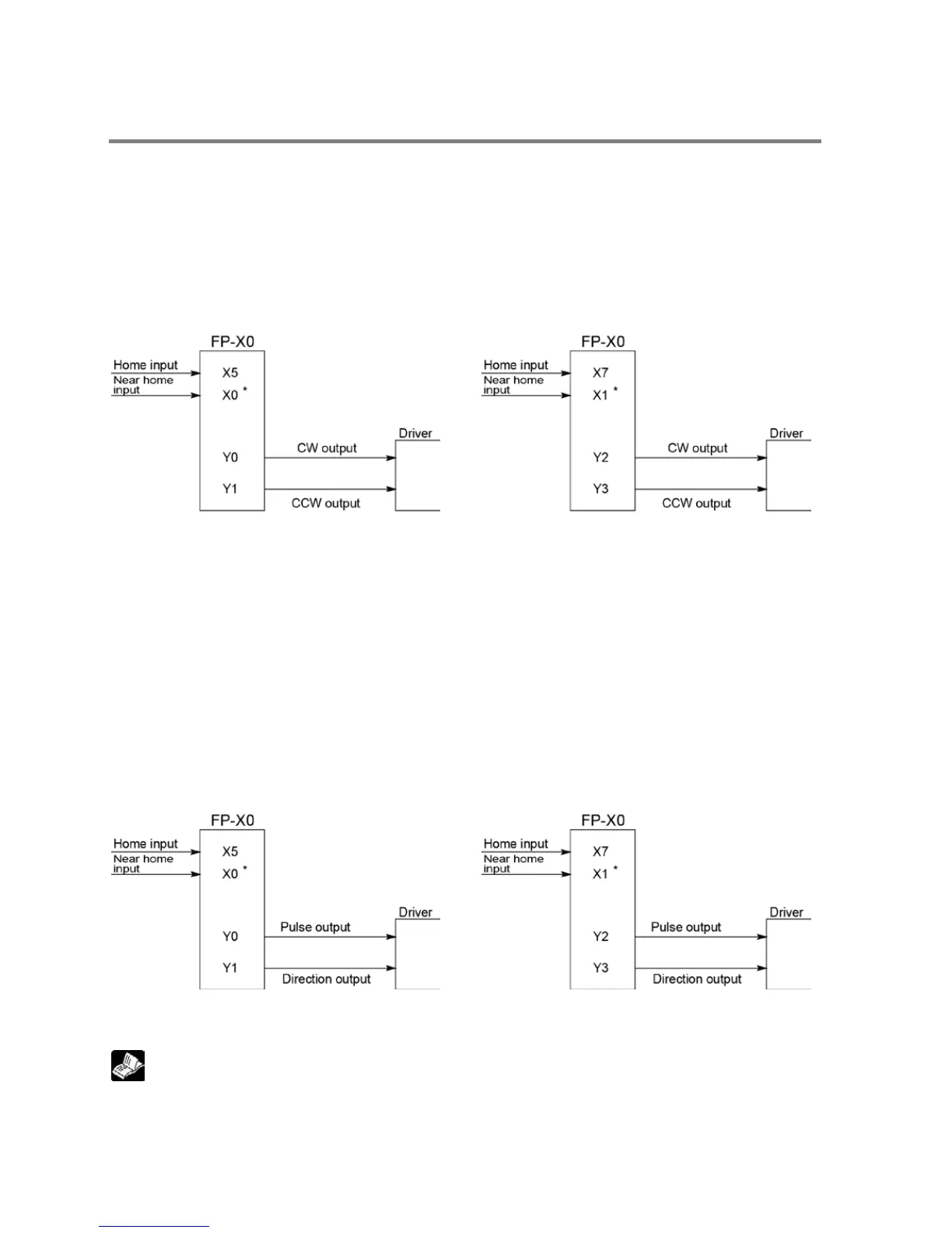 - One output point is used as a pulse output and the other output is used as a direction output.