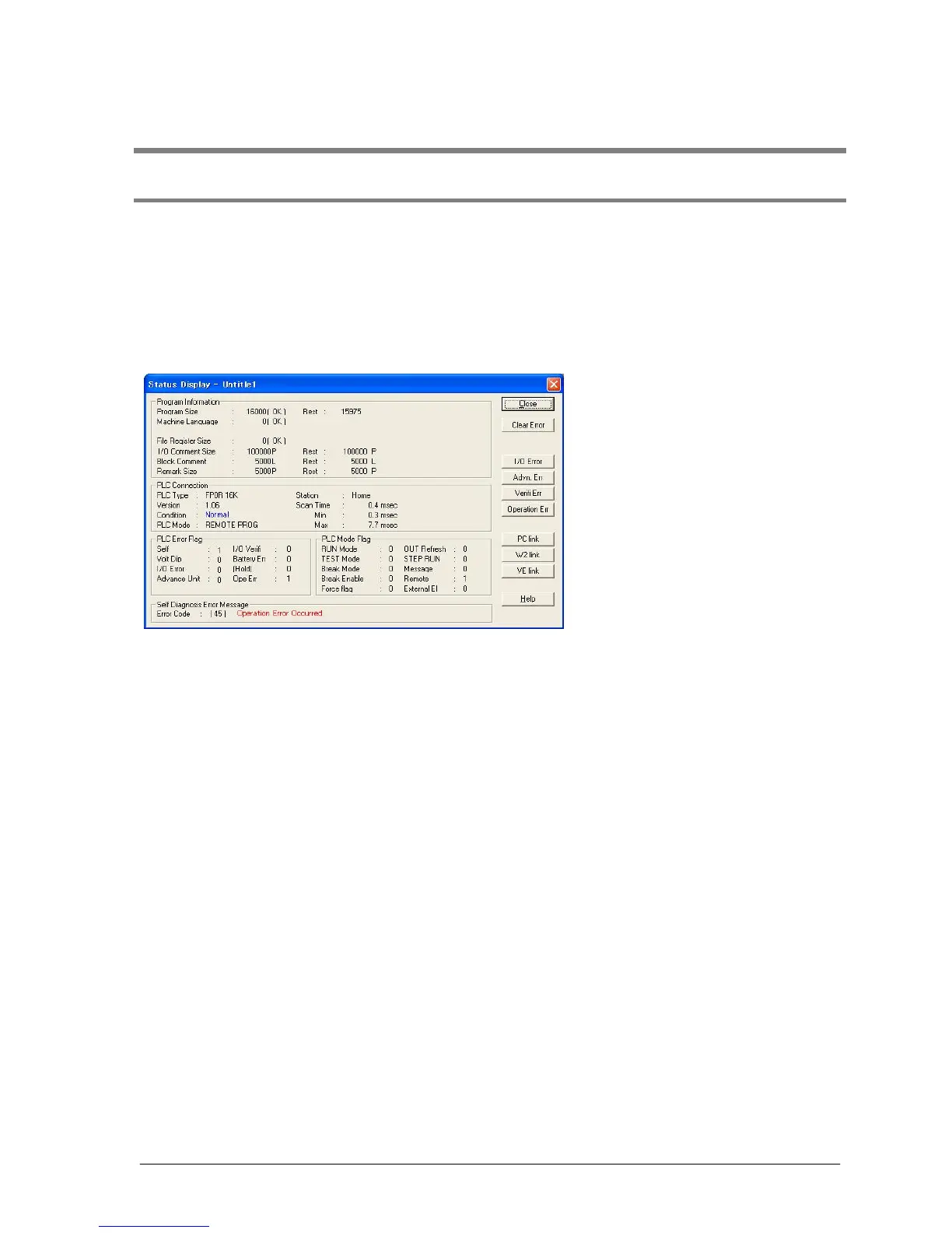 changed to the PROG. mode, the following status display dialog box is displayed automatically. Check