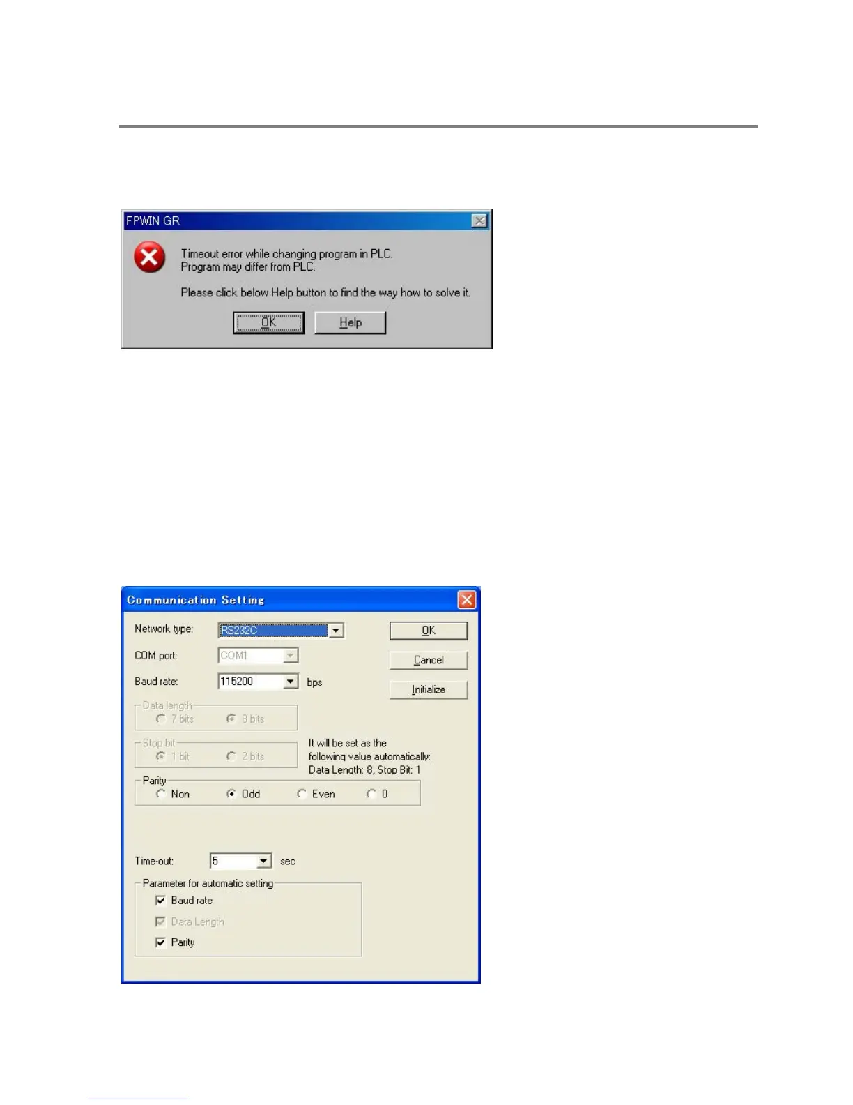 Even if the timeout error message is indicated, it is highly possible that the program in PLC has been