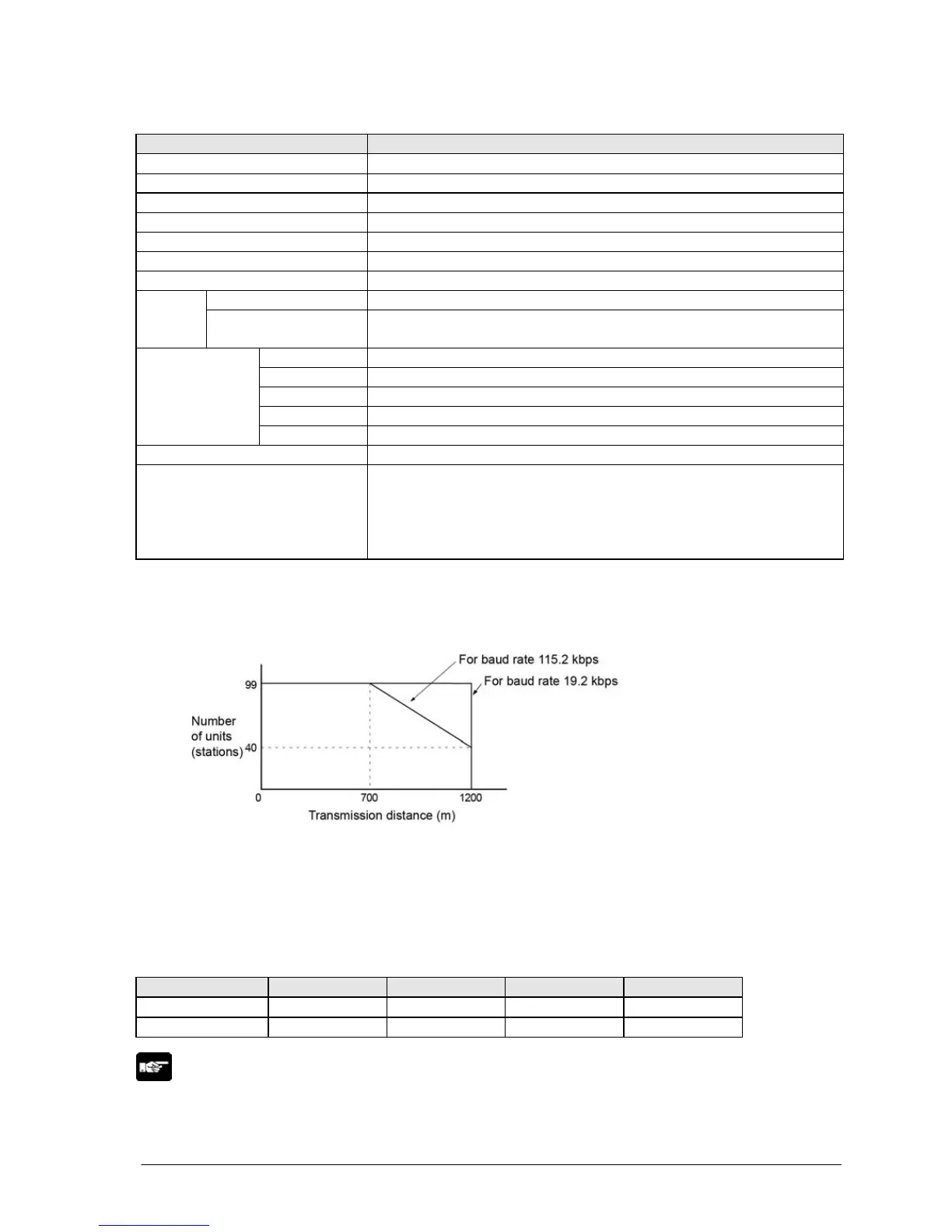 Note2) The values for the transmission distance, baud rate and number of units should be within the
