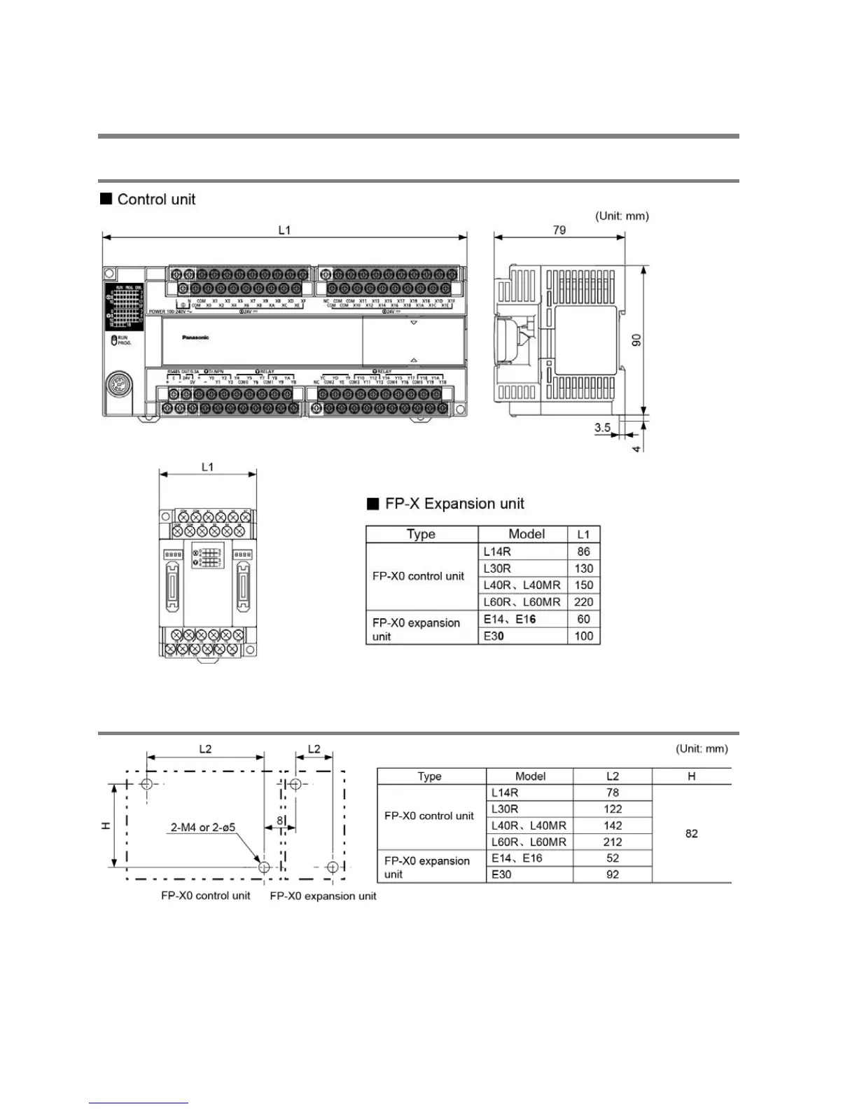Panasonic FP-X0 L40MR - Dimensions