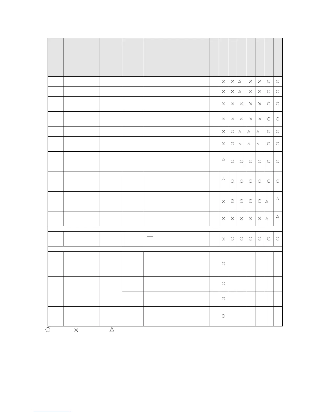 : Available, : Not available, : Not available partially