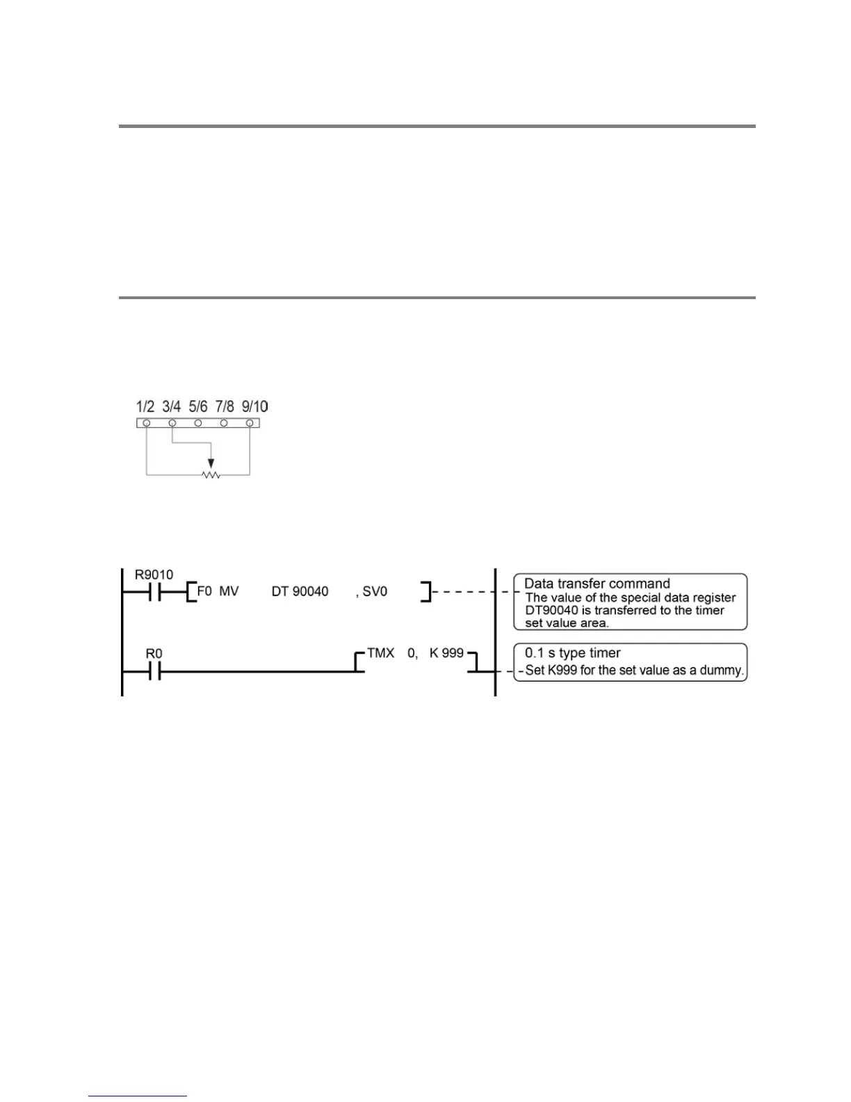 The value of the special data register (DT90040) that corresponds to the analog input CH0 is sent to the