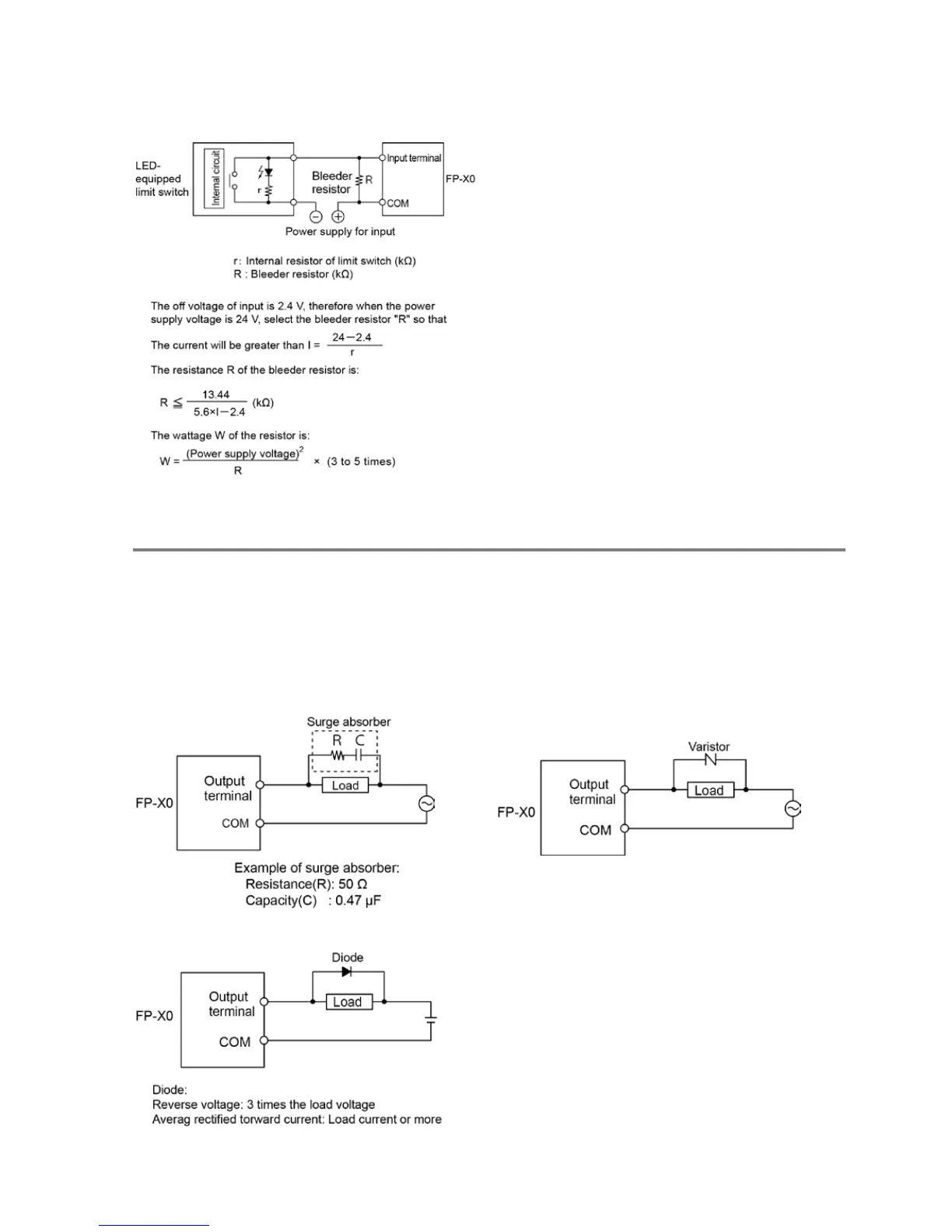 • When switching DC inductive loads with relay output type, be sure to connect a diod across the ends of