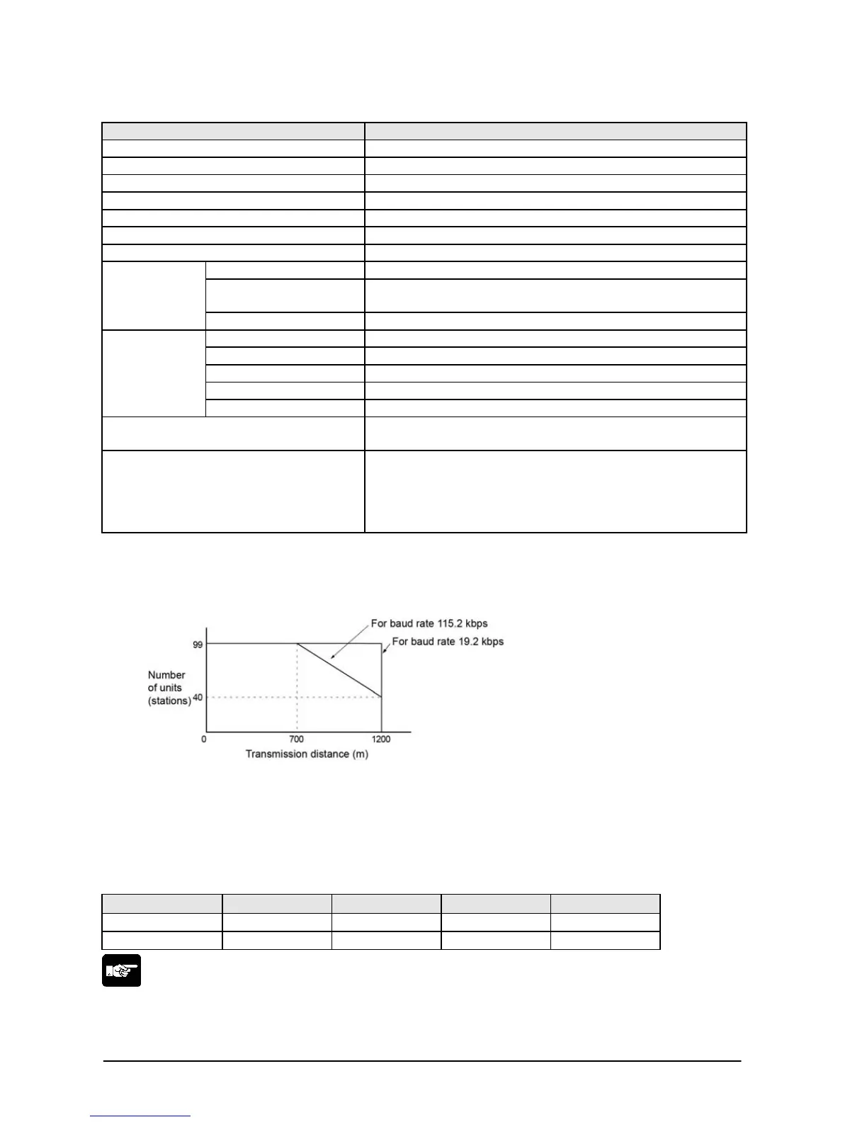 Note2) The values for the transmission distance, baud rate and number of units should be within the