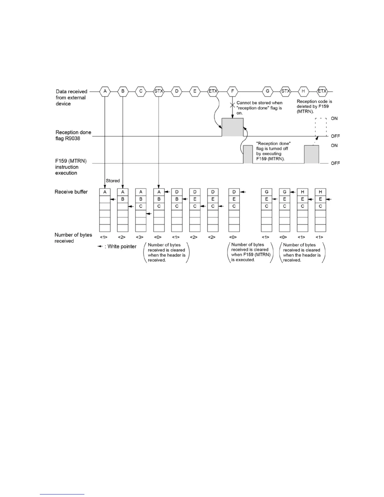 - Also, When F159 (MTRN) is executed, the number of bytes received is cleared, and the address (write