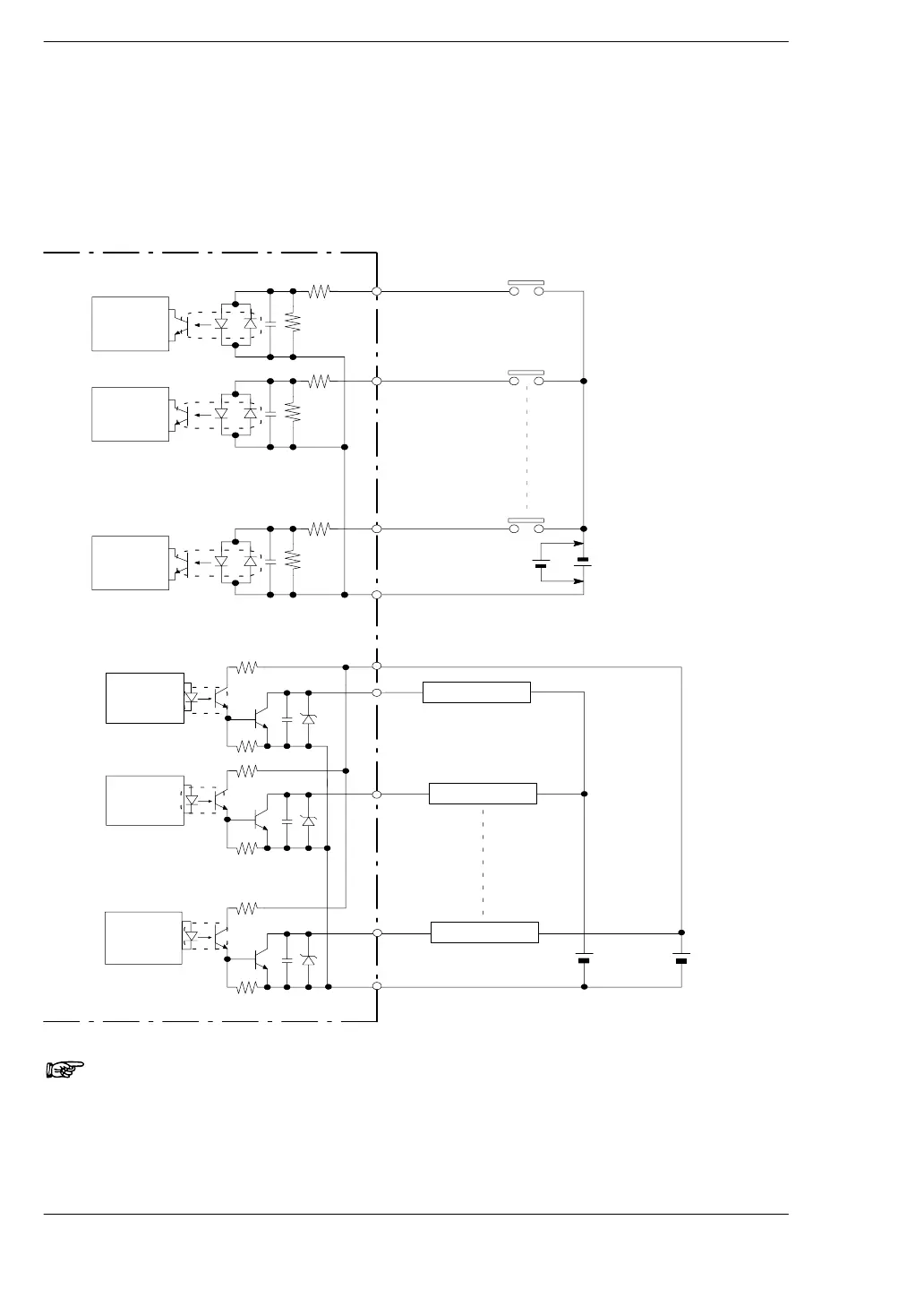 1) The resistor in the control unit is 2 kΩ for X0 through X5, and 1