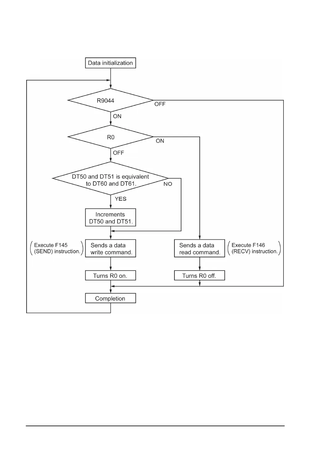 1. Updates the write data if the write data (DT50 and DT51) and the read data (DT60 and DT61) are