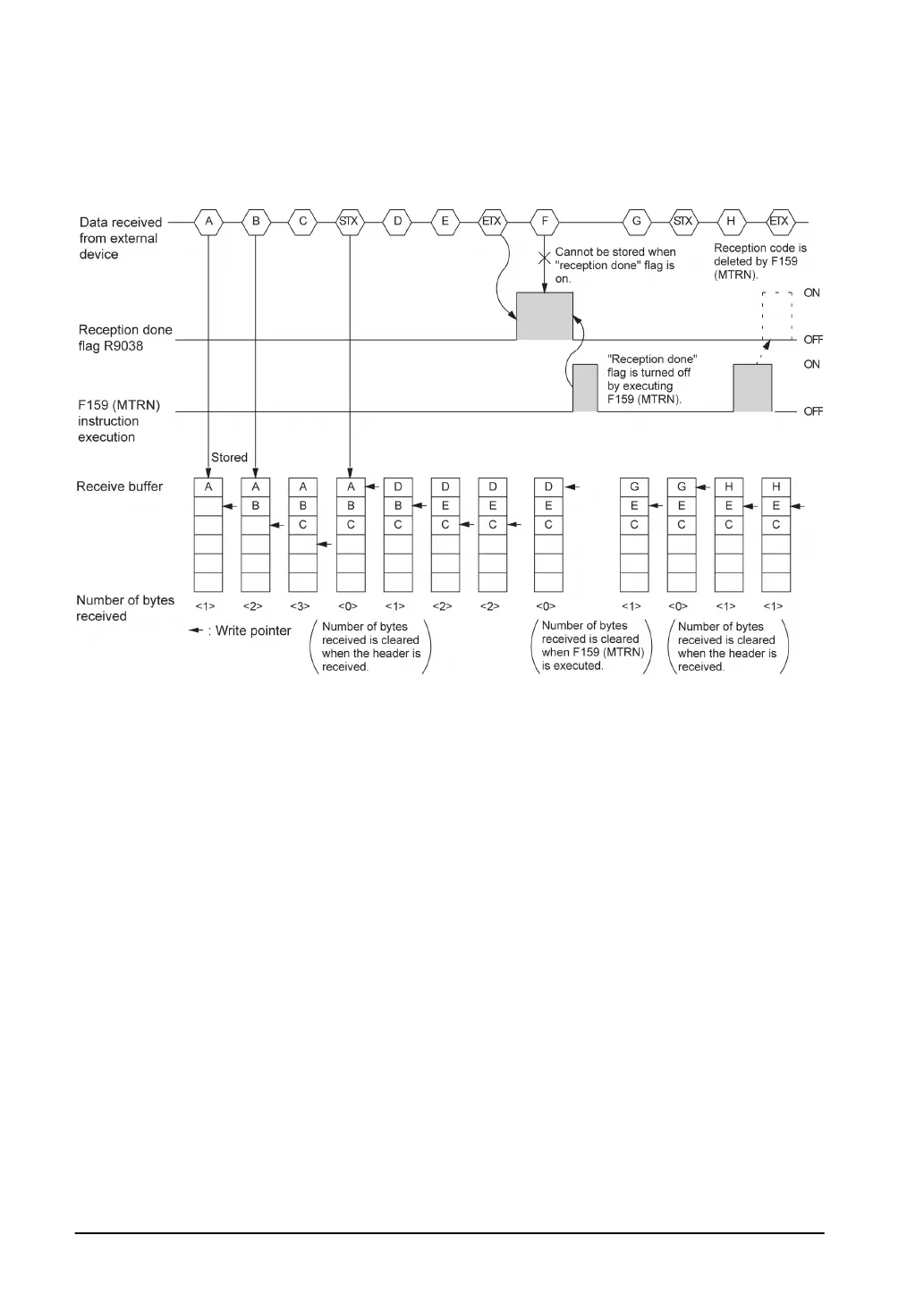 - Also, When F159 (MTRN) is executed, the number of bytes received is cleared, and the address (write