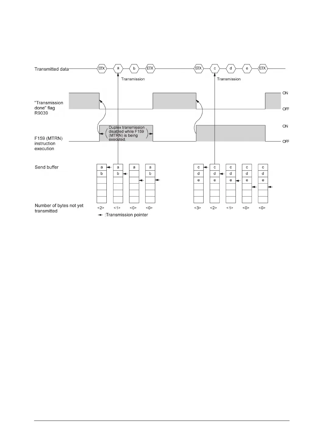 - Duplex transmission is disabled while F159 (MTRN) is being executed. The “transmission done” flag