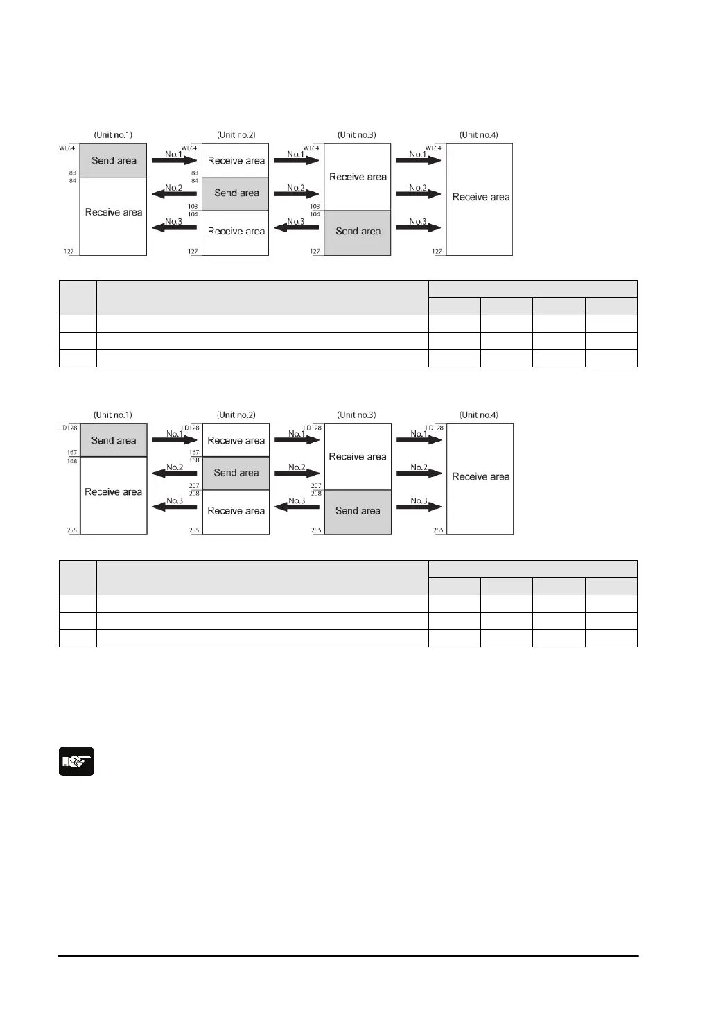 When link areas are allocated as shown above, the No.1 send area can be sent to the No.2, No.3 and