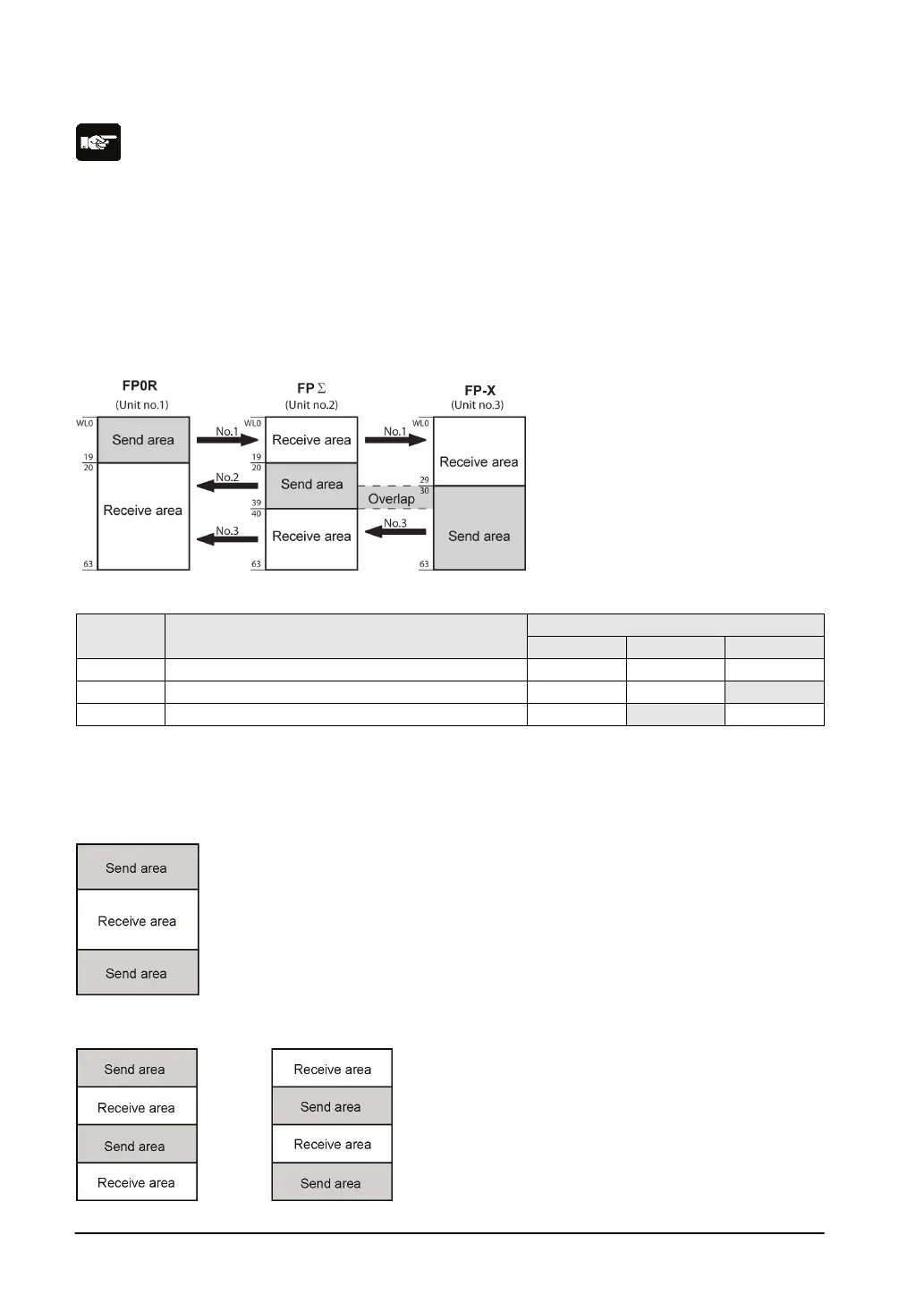 When sending data from a send area to the receive area of another PLC, there must be a link relay and