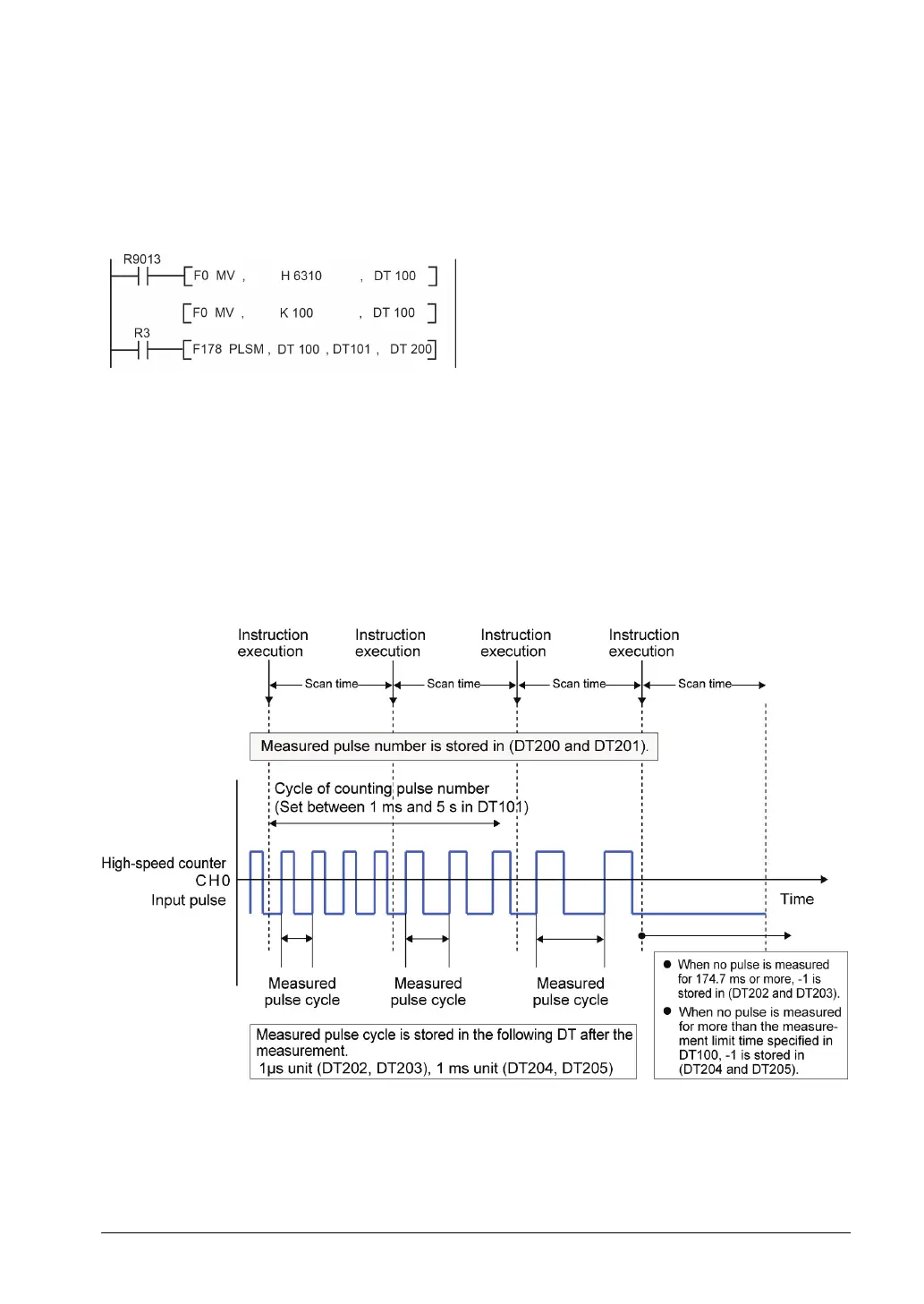 - This instruction is used to measure the pulse number and cycle of a specified high-speed counter