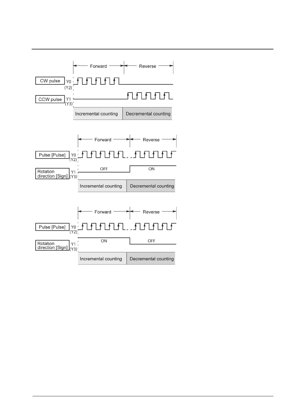 Pulse/direction output method (forward: ON/reverse: OFF)