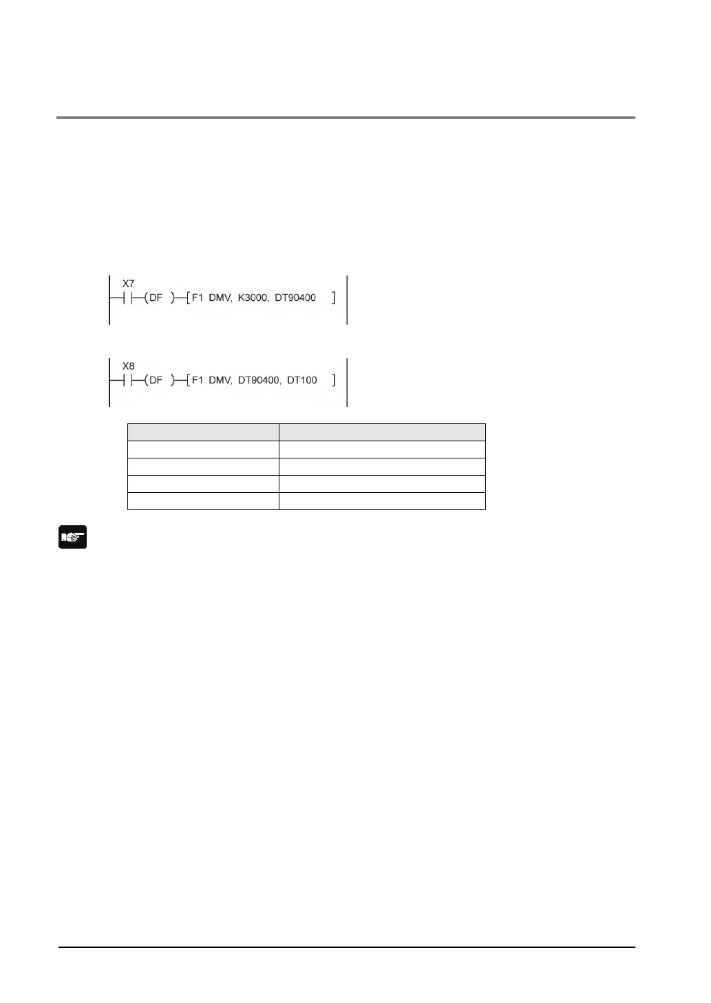 - When executing the F1 (DMV) instruction with DT90400, the elapsed value is stored as 32-bit data in
