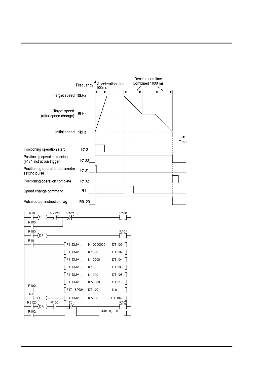 - The explanation below shows the program to change the speed to a speed below the target speed
