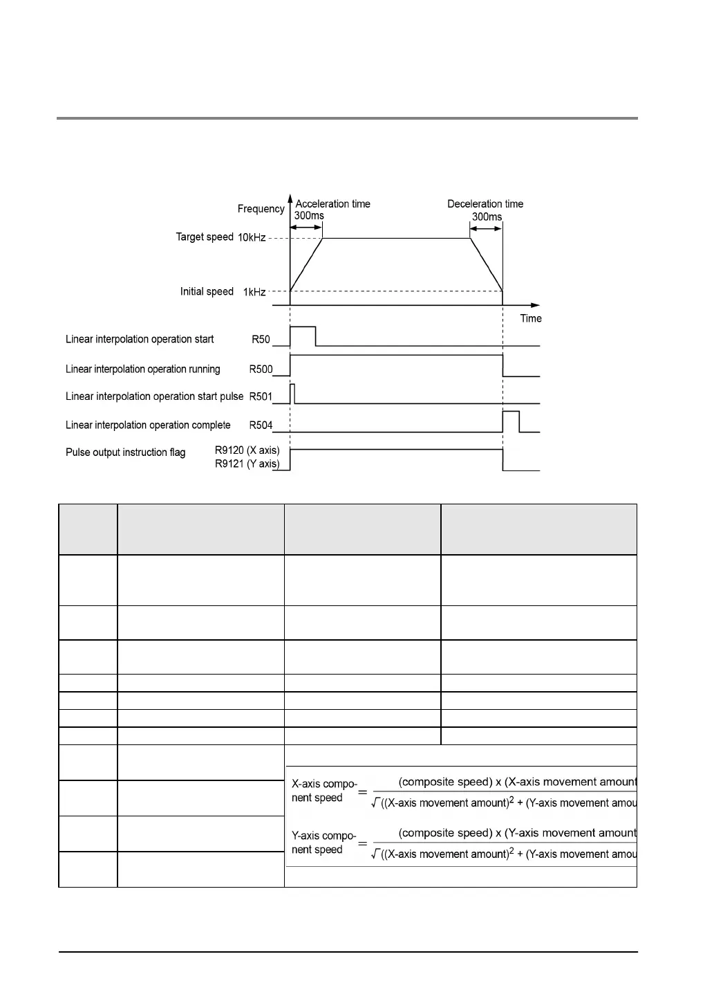 - The linear interpolation controls positioning with two axes according to the specified data table.