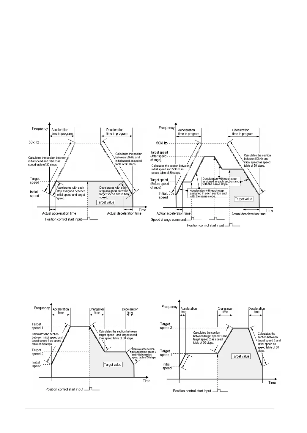 - Specify the time from the initial speed to the maximum speed (50 kHz) as acceleration time and the