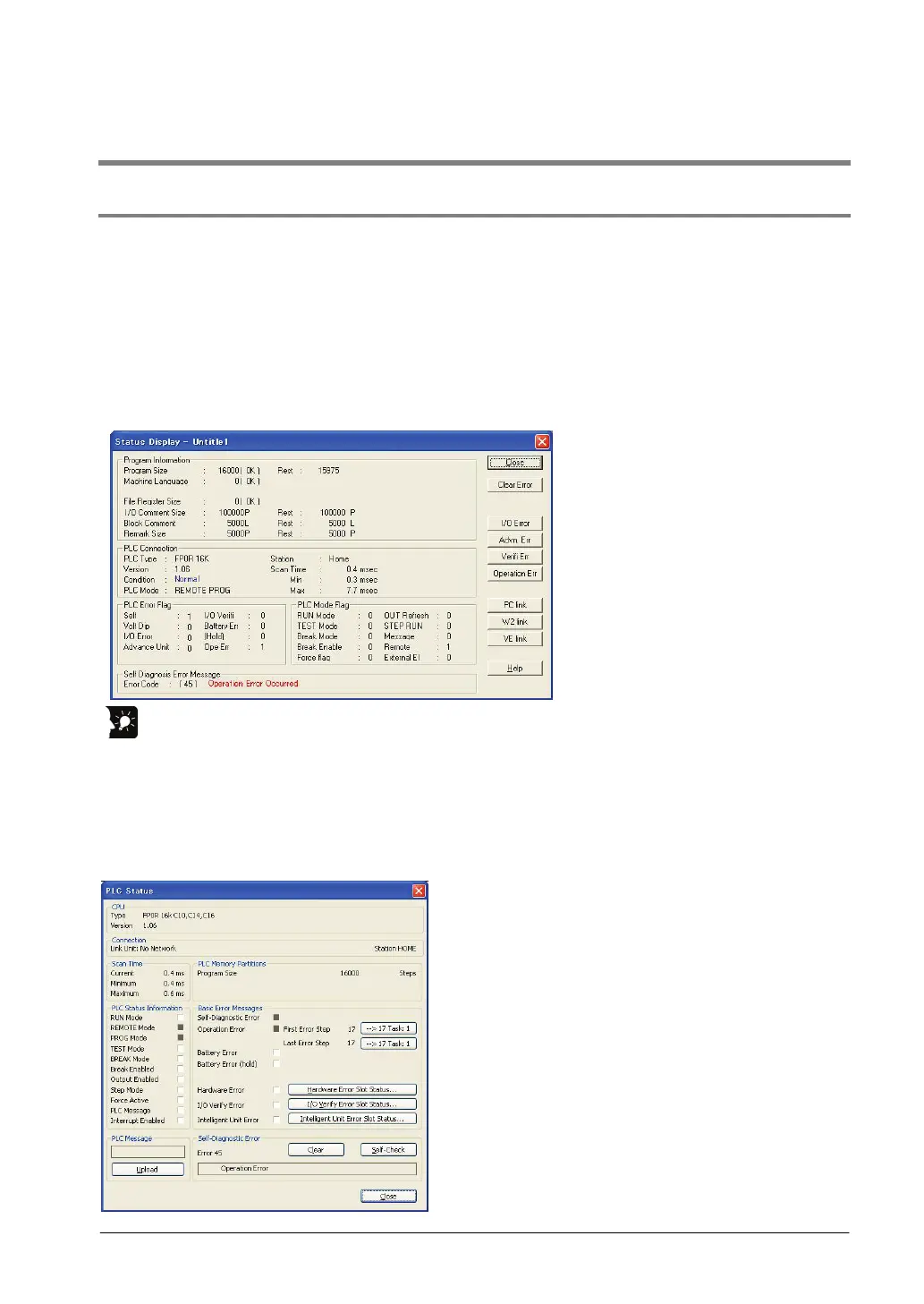 dialog box. Select "PLC status" under "Monitor" in the menu to display this dialog box.