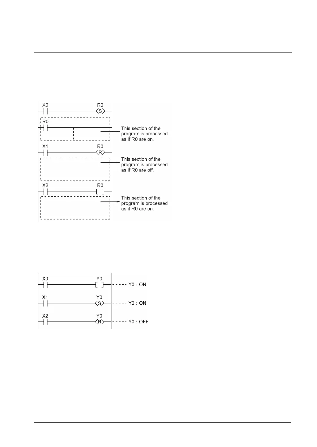 <Example> Output to the same output relay Y0 with OT, KP, SET and RST instructions.