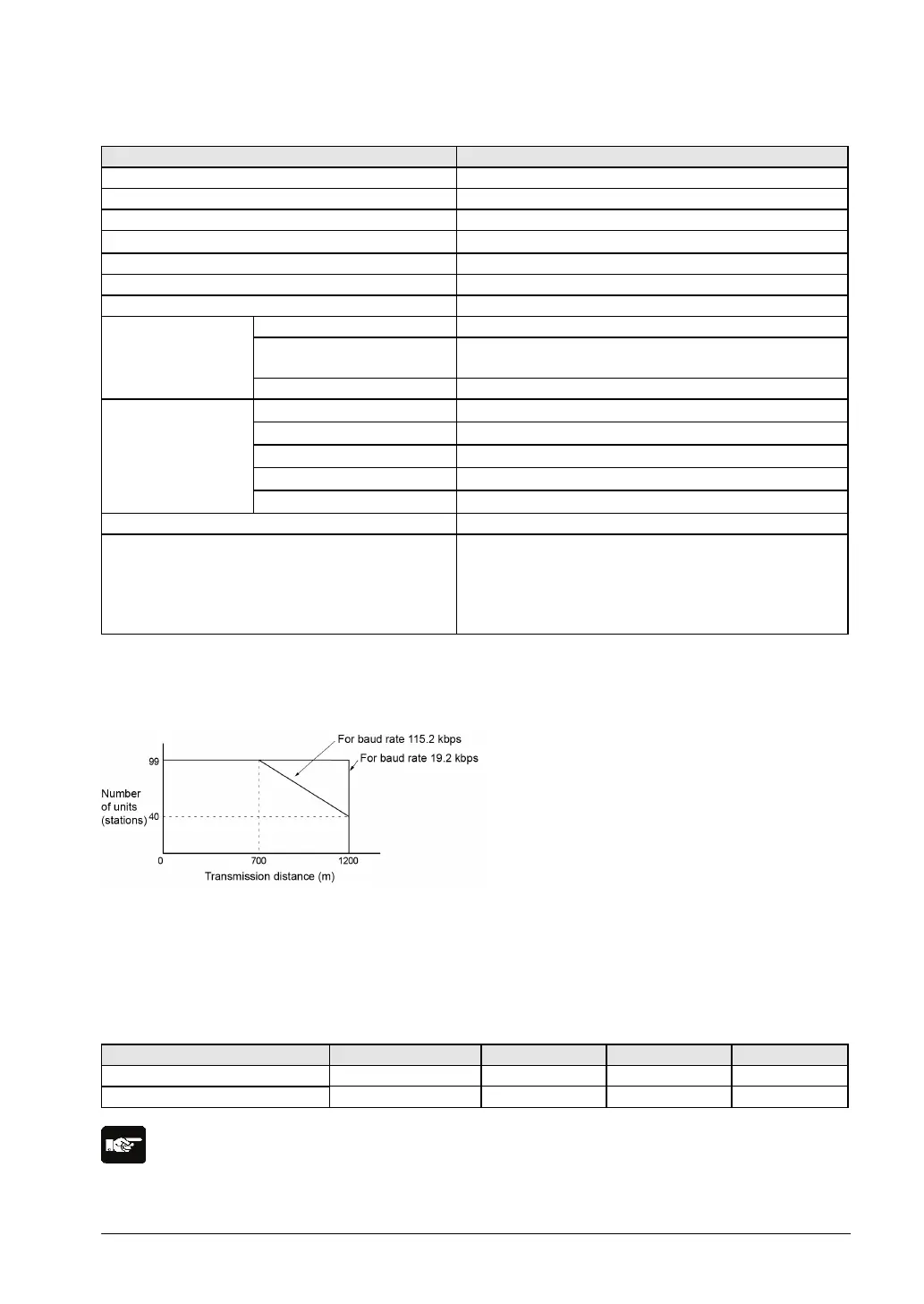Note2) The values for the transmission distance, baud rate and number of units should be within the