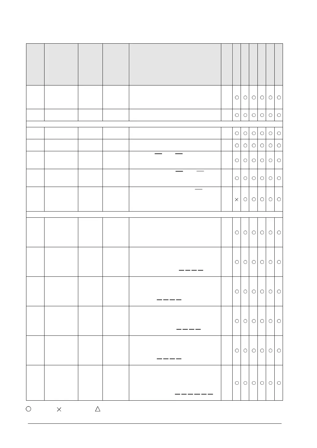 : Available, : Not available, : Not available partially