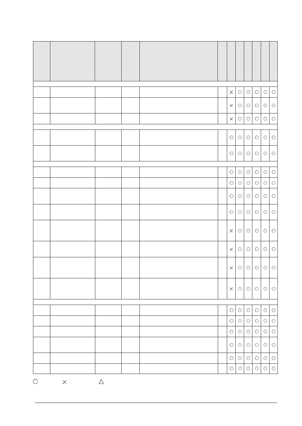 : Available, : Not available, : Not available partially