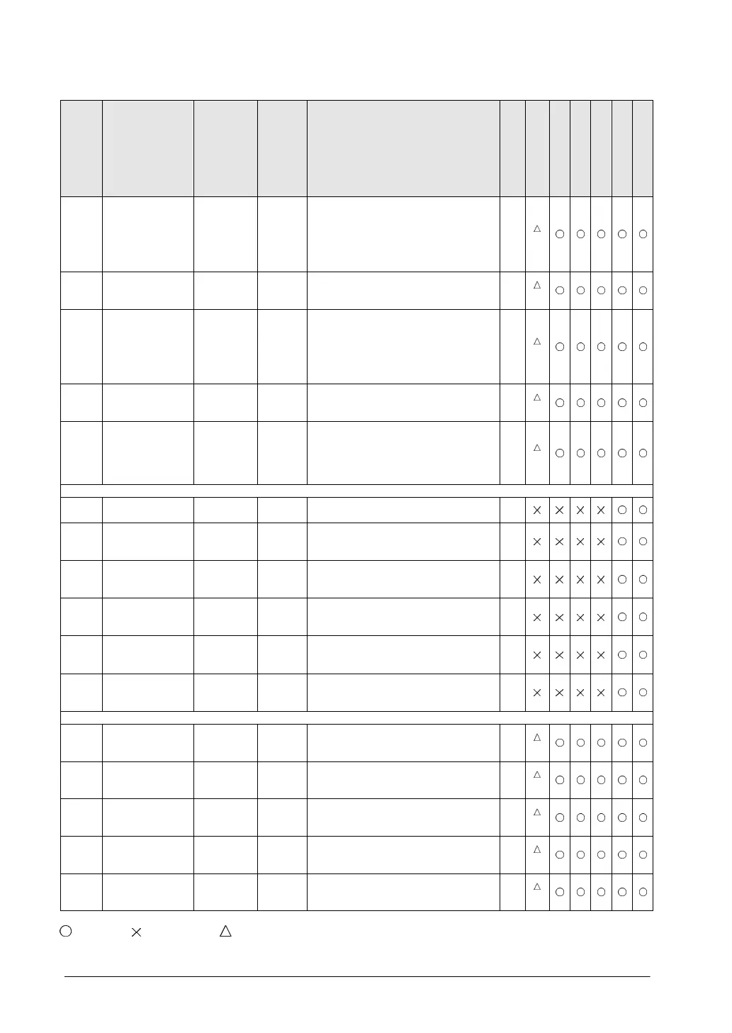 : Available, : Not available, : Not available partially