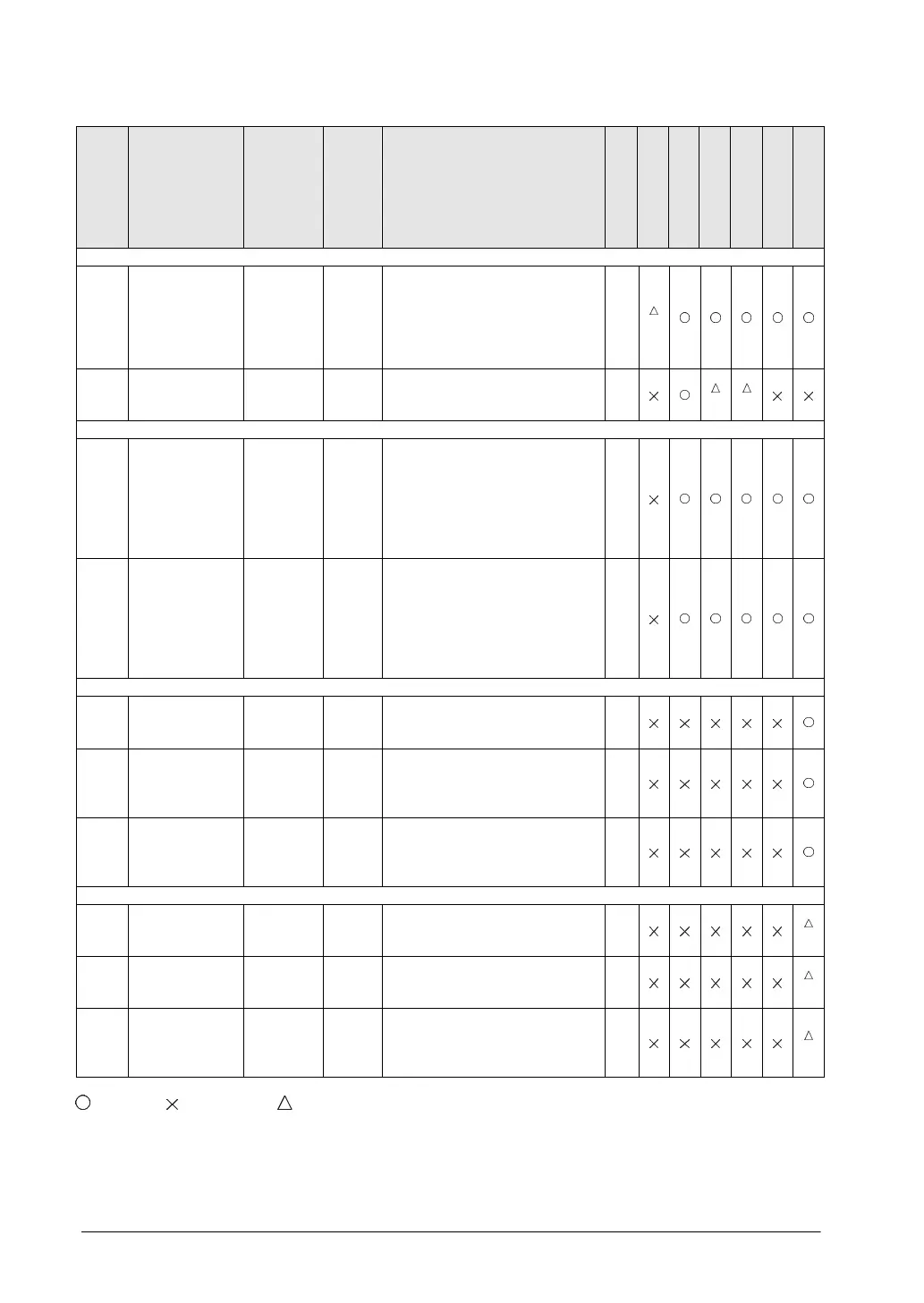 : Available, : Not available, : Not available partially