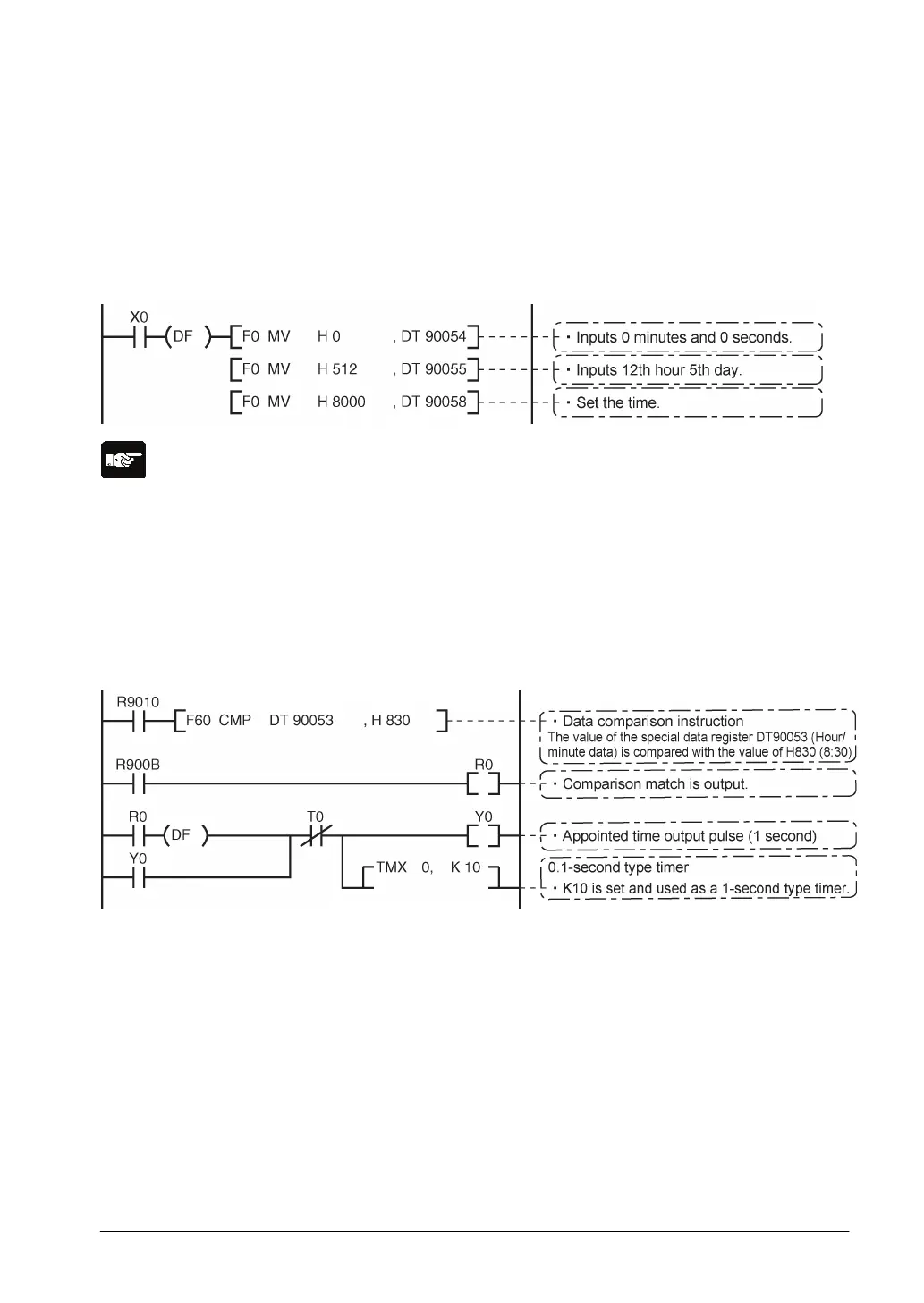Here, the "Hour/minute" data stored in the special data register DT90053 is used to output the signal at