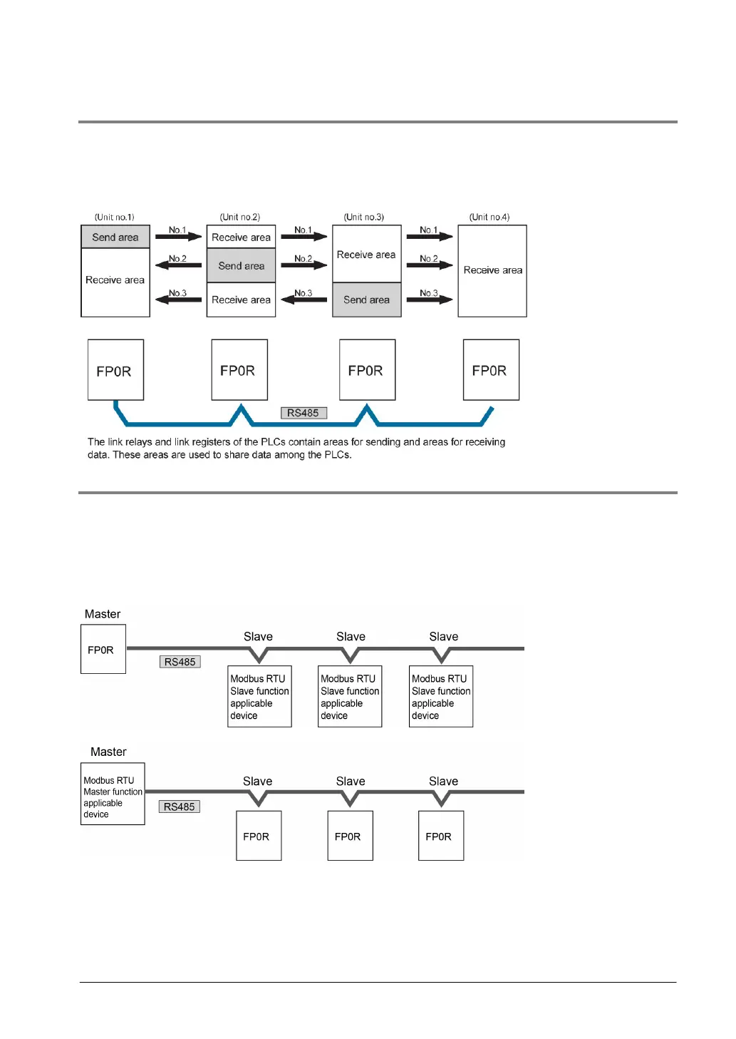 - The MODBUS RTU protocol enables the communication between the FP0R and other devices