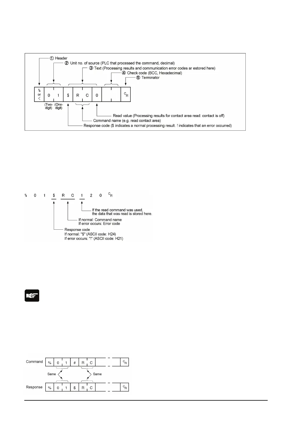 A "%" (ASCII code: H25) or a "<" (ASCII code: H3C) must be at the beginning of a message.