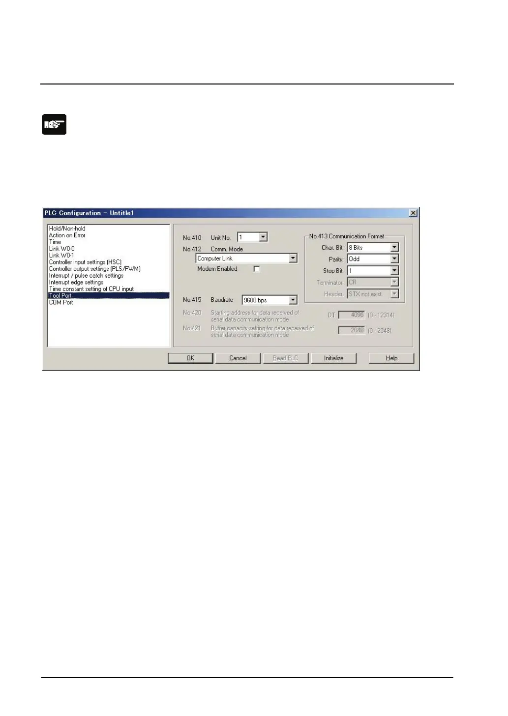 Dialog box of PLC system register setting (Tool port selection screen)