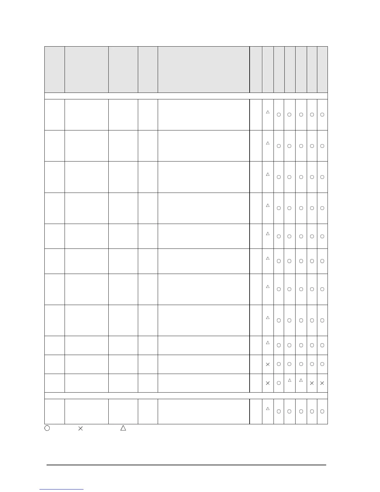 : Available, : Not available, : Not available partially