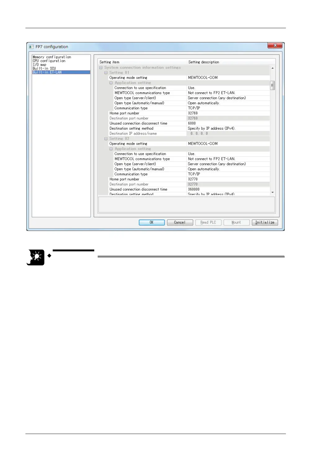 default settings (MEWTOCOL-COM, server connection (unspecified partner),